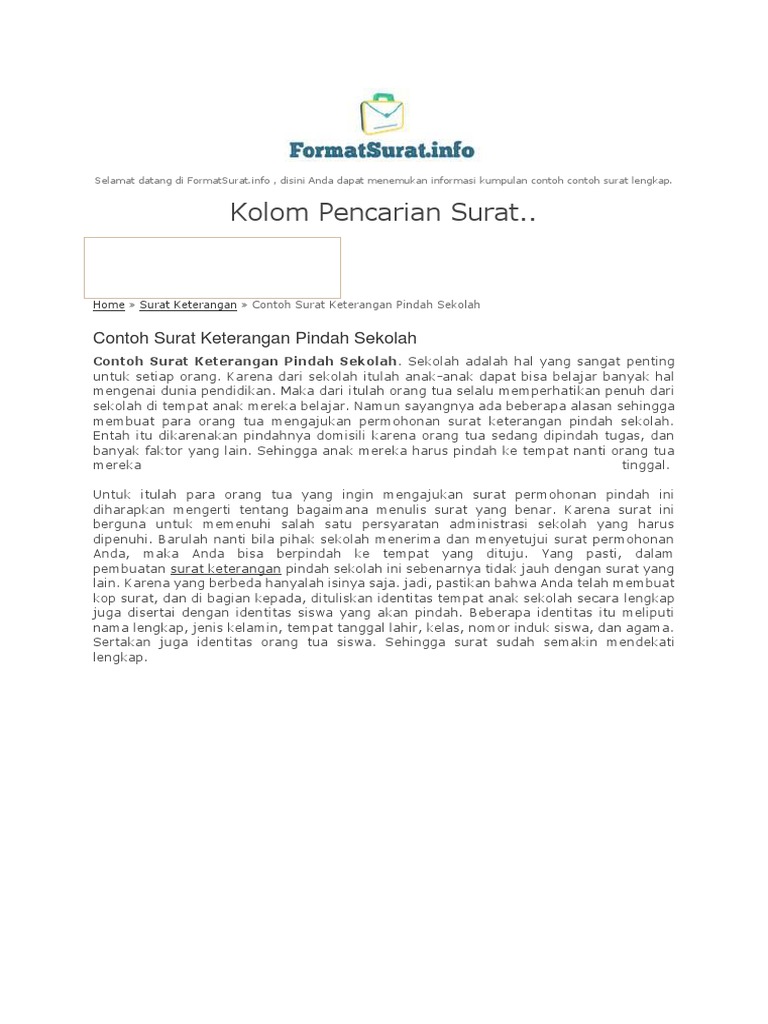 Contoh surat keterangan domisili perusahaan surat keterangan ini berisi data data nama pemilik data perusahaan dan jenis usaha yang masih dijalankan. Contoh surat keterangan pindah domisili pada suatu kondisi anda bisa dihadapkan dengan pilihan untuk berpindah dari tempat dimana anda tinggal selama inimisalnya saja bagi anda yang telah melangsungkan pernikahan dengan seseorang yang berdomisili di wilayah berbeda. Download contoh surat pindah sekolah doc itu tadi penjelasan singkat tentang contoh surat pindah sekolah dari kami sekian dulu pada kesempatan kali ini kita sambung lain kali dengan penjelasan tentang jenis surat yang lain tentunya. Bila anda ingin mendownload contoh surat pindah sekolah dalam format doc silahkan klik link dibawah ini. Biasanya surat keterangan domisili ini dikenal sebagai surat. Surat ini biasanya diterbitkan oleh aparat atau pejabat tertentu namun tujuannya dipergunakan oleh seseorang untuk suatu kegiatan ataupun kepentingan pribadi.