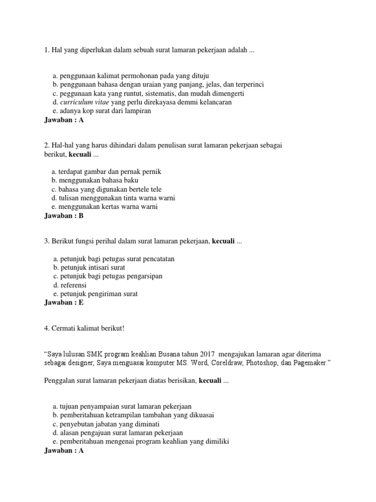Contoh kalimat penutup surat lamaran pekerjaan. Dalam membuat surat lamaran kerja disarankan untuk menggunakan kalimat yang mudah dimengerti atau tidak berbelit belit. Ciri kebahasaan lamaran pekerjaan surat lamaran kerja merupakan surat yang dibuat dengan panjang satu halaman penuh dan isinya mengenai informasi pelamar kerja serta permohonan guna menempati pada posisi tertetu. Demikian surat lamaran kerja ini besar harapan saya untuk bisa diterima di perusahaan yang bapakibu pimpin saat ini. Mungkin terdapat jutaan artikel di internet yang menyediakan panduan bagaimana cara membuat surat lamaran pekerjaan yang disertai contoh surat lamaran pekerjaan baik itu surat lamaran kerja untuk melamar ke perusahaan maupun surat lamaran pekerjaan. Surat lamaran kerja menjadi salah satu lampiran penting yang dibuat oleh para pencari kerja dengan tujuan utama untuk mengajukan pekerjaan baru. Indonesia sekolah menengah pertama 5 pts.