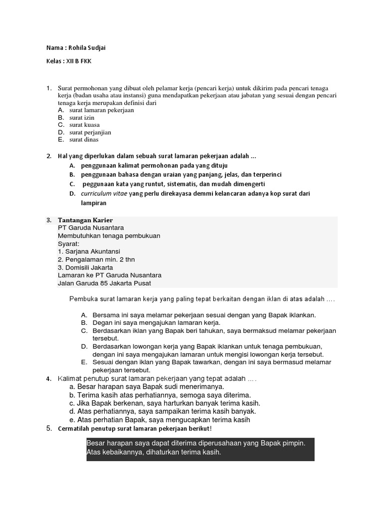 15 contoh surat lamaran kerja berdasarkan iklan paling lengkap salah satu sumber informasi tentang lowongan pekerjaan adalah melalui iklan. Dokumen pelamar menjadi hal yang sangat penting dikarenakan dokumen tersebut menjadi bukti kualifikasi pelamar. Kualitas dari surat lamaran kerja ini dilihat dari susunan kalimat pembuka isi hingga penutup. Seorang hrd tentunya harus membaca puluhan atau bahkan ratusan cover letter yang datang setiap kurun waktu tertentu. Pada bagian inti surat lamaran kerja ini terdapat biodata singkat mengenai diri anda. 9 contoh kalimat pembuka surat lamaran kerja yang baik dalam membuat surat lamaran kerja yang baik ada beberapa hal penting yang harus diketahui oleh pembuatnyatujuannya adalah agar surat lamaran kerja yang dibuat mudah dipahami dan dapat memberikan keyakinan bahwa apa yang anda usahakan dalam proses mendapatkan pekerjaan dapat dipertimbangkan secara lebih maksimal.