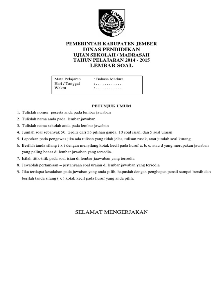 Contoh soal uts semester ii bahasa madura kelas 2.