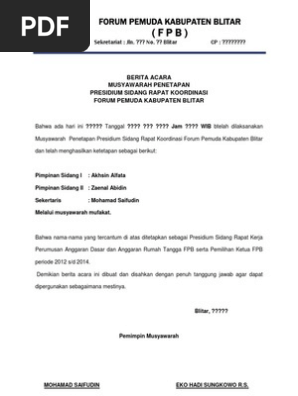 Contoh surat berita acara hasil rapat. Sesuai dengan contoh beberapa hal yang perlu anda perhatikan ketika membuat berita acara kegiatanrapat antara lain yaitu kop. Contoh berita acara rapat kejadian kegiatan kelulusan dan serah terima jabatan pemilihan rt maupun pekerjaan di perusahaan yang baik dan benar. Tapi diharuskan menunjukkan bukti otentik dari setiap kegiatan di luar kantor oleh si bos. Contoh berita acara tersebut benar benar diperlukan untuk mereka yang mengalami kesusahan dalam membikinnya atau juga malahan yang masih belum tahu dan paham apa itu berita acara. Bagian paling atas dari berita acara ini merupakan hal wajib yang tidak boleh ketinggalan dalam sebuah berita acara. Contoh berita acara yang baik dan benar sangat diperlukan dalam dunia kerja atau organisasi.
