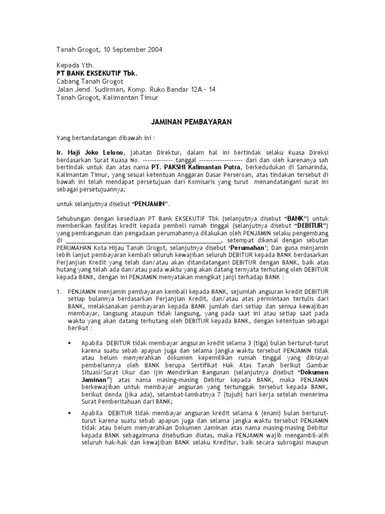 Contoh surat buyback guarantee. Perjanjian jaminan perseorangan untuk selanjutnya disebut perjanjian ini dibuat dan ditandatangani pada hari ini hari tanggal tahun oleh dan antara. Contoh surat permohonan kerjasama kredit perumahan rakyat. Naviriorg berikut ini adalah contoh surat perjanjian jaminan perseorangan personal guarantee. Salah satu contoh surat yang paling sering digunakan oleh perusahaan adalah contoh surat pesanan barang. Untuk lebih jelasnya dapat dilihat beberapa contoh surat jaminan pembayaran hotel yang benar di bawah ini. Diunggah oleh red borneo.