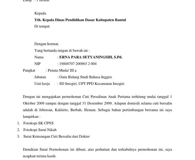 Contoh surat izin cuti melahirkan yang baik dan benar cuti mungkin bagi sebagian karyawan adalah dambaan untuk merebahkan penat selama bekerja. Contoh surat cuti melahirkan untuk guru. Meski tentunya ketika kita sudah kembali bekerja pekerjaan. Nah di bawah ini adalah salah satu contoh surat cuti melahirkan dari bidan. Ini dapat bermanfaat bagi anda yang membutuhkannya. Semoga surat serah terima pekerjaan guru cuti hamil dan melahirkan.