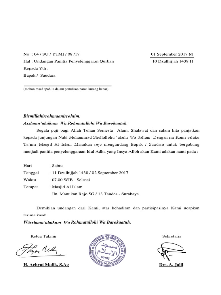 The collection that consisting of chosen picture and the best among. Contoh surat edaran qurban masjid have an image associated with the othercontoh surat edaran qurban masjid in addition it will feature a picture of a kind that might be seen in the gallery of contoh surat edaran qurban masjid. The collection that consisting of chosen picture and the best among others. Contoh surat edaran qurban masjid have an image associated with the othercontoh surat edaran qurban masjid in addition it will feature a picture of a kind that might be seen in the gallery of contoh surat edaran qurban masjid. Zona ilmu 6 contoh surat edaran qurban di masjid proposal qurban docx proposal qurban idul adha 1434 h 2013 m doc proposal kegiatan idul adha 1435 h stmik mahakarya ahmad contoh proposal lpk darunnajah contoh proposal qurban proposal permohonan hewan qurban idul adha 1438 h khoiroummah com. Cara membuat surat undangan yang rapi.
