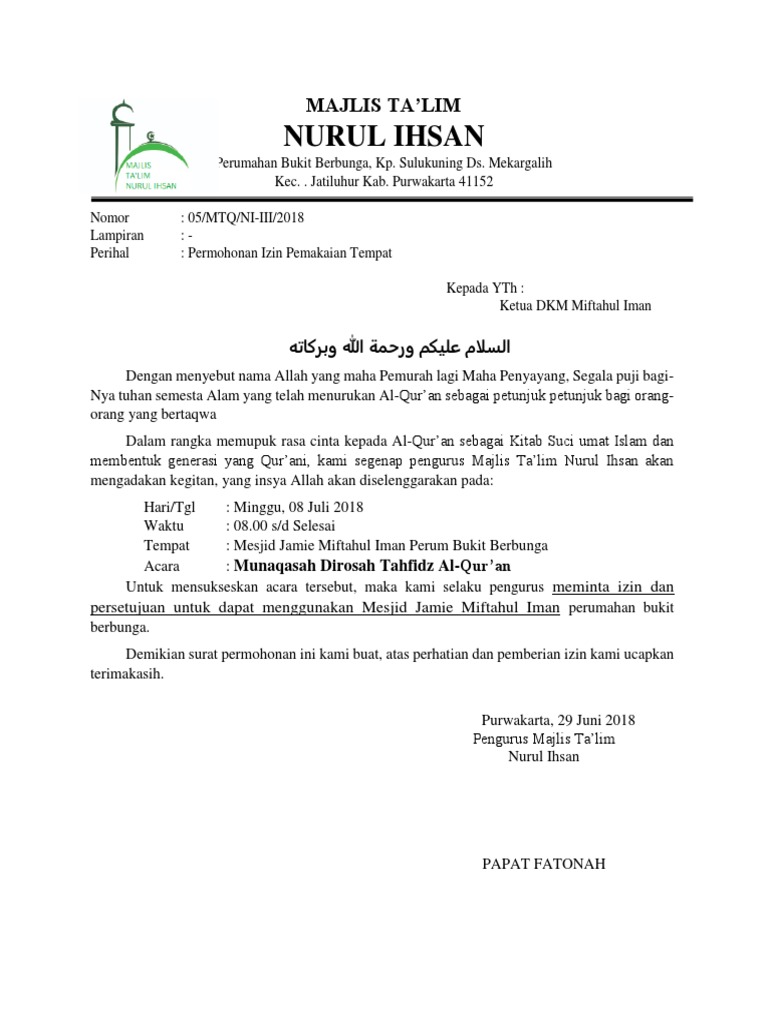 Contoh surat izin menggunakan tempat. Madiun 5 agustus 2016. Contoh file berikut ini adalah kumpulan dari berbagi sumber tentang contoh surat izin pembukaan tempat latihan pencak silat iks pi yang bisa bapakibu gunakan dan diunduh secara gratis dengan menekan tombol download biru dibawah ini. Contoh surat permohonan izin pemakaian gedung lapangan baik dan benar berikut adalah contoh surat permohonan pemakaian gedung lapagan olah raga untuk keperluan kegiatan. Atas ketidakhadiran juga sering menggunakan surat izin misalnya surat izin tidak masuk sekolah kerja dan kuliah. Baik itu surat yang dipergunakan oleh perusahaan instansi pemerintahan lembaga organisasi dan perseorangan. Nah bagi anda yang ingin menulis surat ini alangkah baiknya anda memperhatikan kosa kata dan penulisannya yang baik dan benar agar dalam membuat contoh surat izin peminjaman tempat ini bisa anda terapkan dengan baik sebagai refrensi.