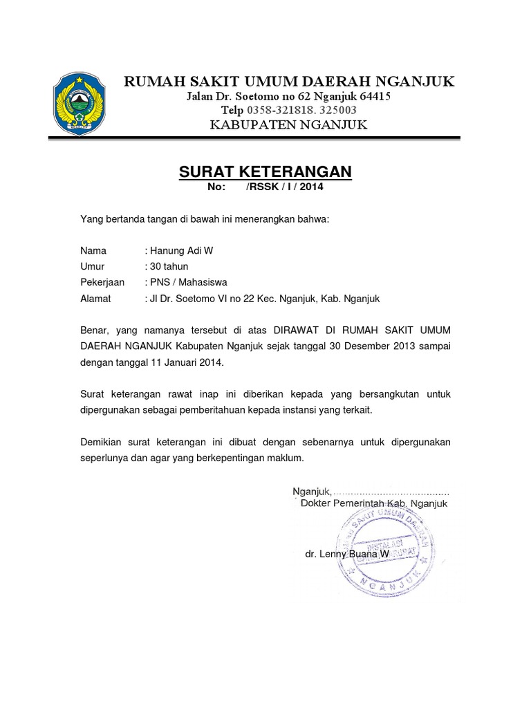 Hormat saya anggi susilo. Contoh surat izin sakit. Contoh surat dokter pun beragam dan dibuat sesuai dengan kebutuhan seseorang yang memintanya. Namun surat dokter bukan hanya berisi keadaan sakit seseorang saja. Untuk itu anda bisa menjalani rawat inap di rumah sakit dan meminta pihak dokter mengeluarkan surat keterangan sakit. Contoh surat keterangan rawat inap by rintowalker.
