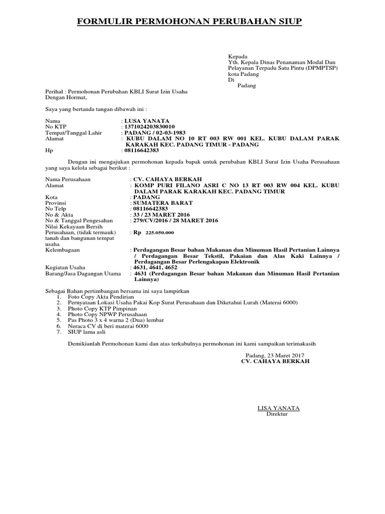 Memang sangat perlu banget kalau kita mempunyai usaha di bidang makanan maka anda harus mempu membuat. Inilah pembahasan selengkapnya mengenai contoh surat izin usaha perdagangan siup pdf.