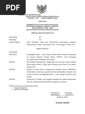 Contoh surat keputusan karang taruna. Sk karang taruna desakelurahan adalah surat keputusan yang ditetapkan oleh kepala desalurah dalam rangka menetapkan pengurus karang tarunapemuda pemudi di wilayah desakelurahan. Academiaedu is a platform for academics to share research papers. Contoh surat pengunduran diri atau contoh surat resign yang baik dan benar. Untuk bisa menjadi anggota karang taruna di seuatu tempat maka tentu anda harus berdomisili di sana. Surat undangan dengan tujuan rapat karang taruna merupakan salah satu surat resmi karena pada surat undangan rapat terdapat ada kepala surat dan berstempel organisasi. Fungsi dari surat undangan rapat adalah untuk mengundang individu ataupun kelompok untuk menghadiri suatu rapat atau musyawarah.