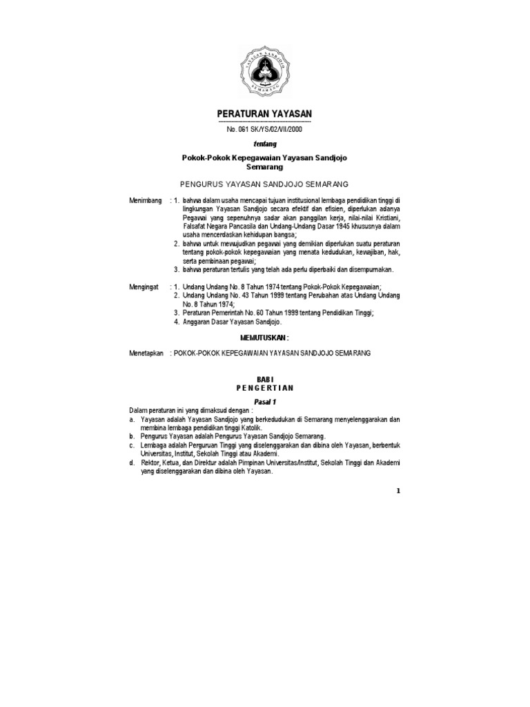 Madrasah swasta agar mendapat ijin operasional dari pemerintah salah satu syaratnya adalah harus mempunyai yayasan. Surat keputusan diperlukan bilamana seorang pemimpin atau atasan membuat keputusan di suatu pihak atau kelompok. Statuta universitas teologi indonesia tertanggal 20 mei 1995. Oleh karena itu jawaban yang tepat adalah c.