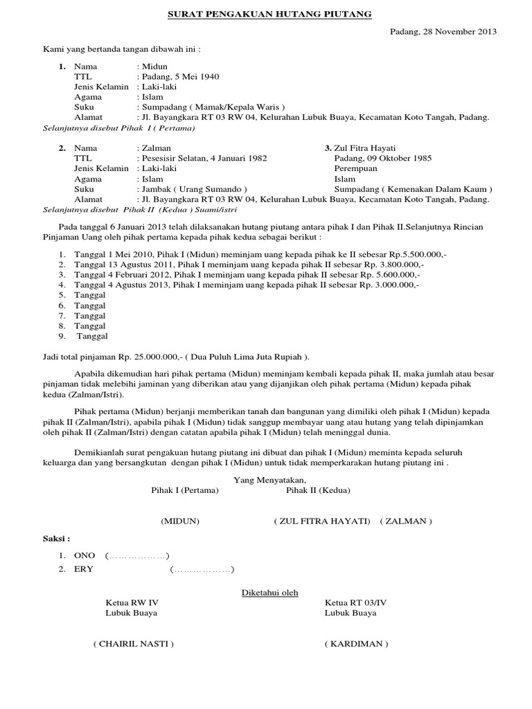 Contoh Surat Pernyataan Hutang Yang Baik Dan Benar