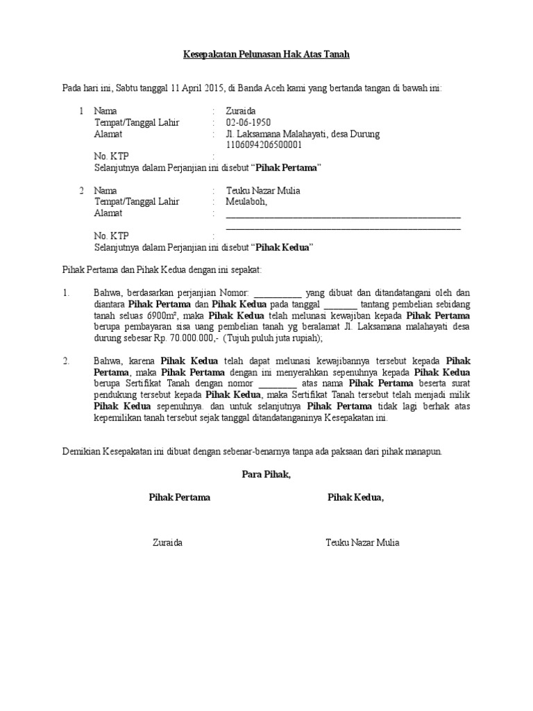 Bahwa sampai dengan tanggal jatuh tempo tersebut pihak pertama ternyata hanya dapat melakukan pembayaran atas sebagian hutang tersebut kepada pihak kedua sebesar rp. Persetujuan bersama ini sangat penting dibuat supaya tidak terjadi masalah di kemudian hari.