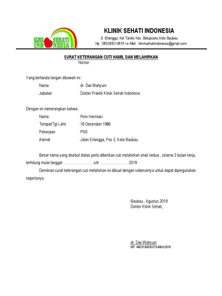 Asli Contoh Surat Cuti Melahirkan Contoh Terbaru