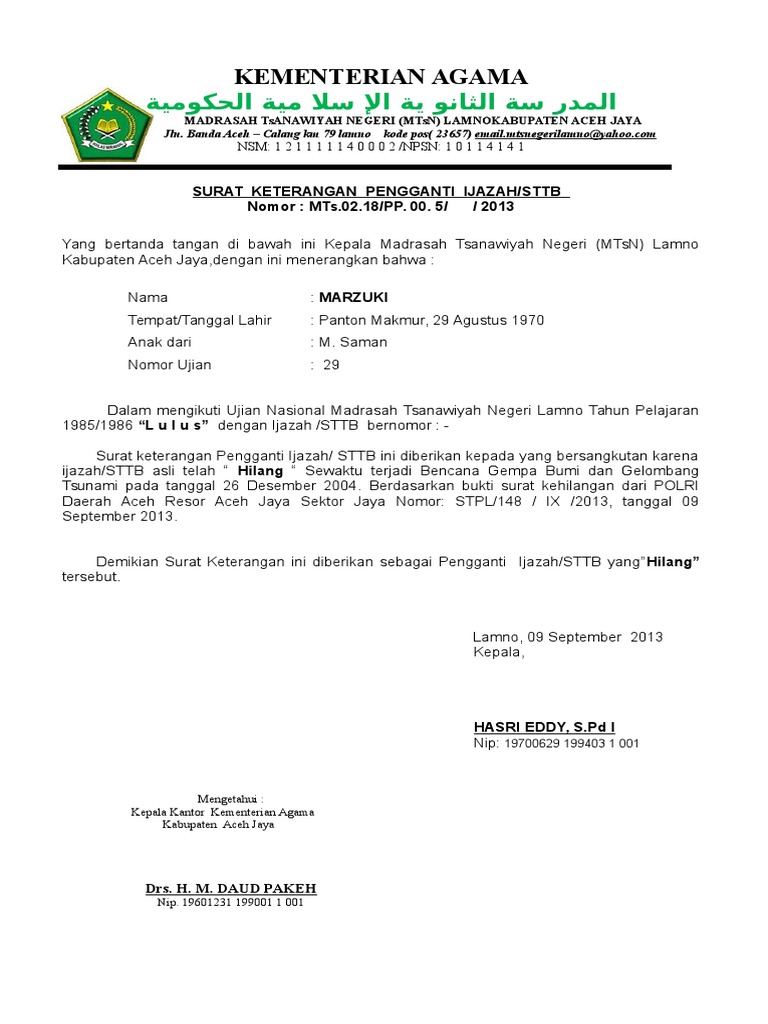 Contoh surat keterangan hilang ijazah. Contoh surat pernyataan kehilangan ktp ktm ijazah contoh surat pernyataan kehilangan kehilangan sebuah surat atau dokumen penting memang sering terjadi. Surat keterangan hilang ijazah merupakan keterangan dari kepala sekolah kepada dinas pendidikan dan kebudayaan menerangkan bahwa peserta didik siswa tersebut benar telah kehilangan ijazahnya. Setelah dokumen tersebut hilang maka mau tidak mau anda harus mengurusnya kembali agar bisa mendapatkan dokumen penggantinya. Sesuatu yang butuh 3 tahun untuk mendapatkannya sayang kalo hilang tapi kalau benar benar hilang mungkin anda harus membuat surat keterangankehilangan jika dalam suatu masa anda diharuskan menggunakan ijazah tapi ternyata sudah hilang. Posted by unknown at 1806. Format surat keterangan hilang ijasah anda merasa kehilangan ijasah dan anda yakin bahwa pernah sekolah di suatu lembaga pendidikan atau sekolah yang bersangkutan tentu ijasah tersebut tidak bisa diganti dengan format ijasah baru melainkan anda harus meminta surat keterangan hilang ijasah kepada sekolah yang pernah anda duduki.