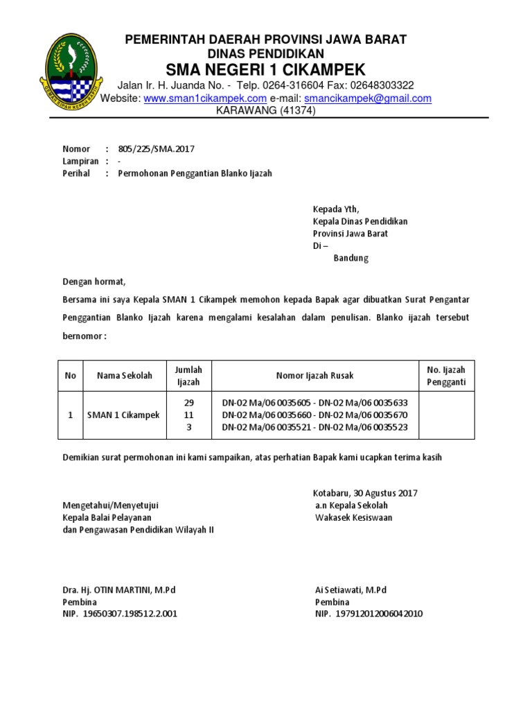 Contoh surat keterangan ijazah rusak. Download contoh surat administrasi pengganti ijazah rusakhilangsalah salah dalam penulisan ini ditujukan bagi siapa saja yang membutuhkan informasi pendidikan aplikasi dan administrasi untuk digunakan sebagai referensi sesuai keperluan baik itu di lingkungan kelas dan sekolah ataupun umum untuk guru bahkan operator sekolah dan tenaga usaha tu. Membuat contoh surat permohonan dan pengajuan penggantian ijazah rusakhilang adalah salah satu syarat yang harus dibuat oleh sekolah. A surat keterangan hilang dari kepolisian bagi ijazah yang hilang bagi ijazah yang rusak harus melampirkan ijazah tersebut. Ijazah asli untuk ijazah rusak atau surat keterangan kehilangan dari kepolisian setempat untuk ijazah hilang. Contoh surat keterangan pengganti ijazah yang dimana surat ini berguna untuk mengganti ijazah yang hilang atau salah dalam penulisan nama lengkap alamat maupun tanggal lahir surat pengganti ijazah ini sangat berguna untuk memperkuat ijazah yang hilang atau salah dalam penulisan ijazah tetapi dengan syarat pada surat ini persetujuan dengan pihak sekolah atau pihak dinas bahwa membuktikan. 6000 sebanyak 1 lembar.