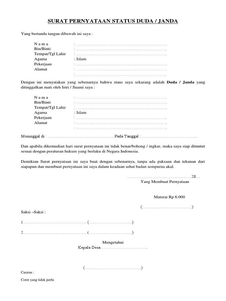 Contoh surat keterangan janda. Geuchik gampong bugak krueng kecamatan jangka kabupaten bireuen propinsi aceh dengan ini menerangkan bahwa. Karena masih banyak juga yang belum tahu bagaimana membuat surat ini maka tidak ada salahnya jika kita pelajari lebih lanjut. Kasur tempattgl lahir. Kades membawa perubahan bisa menjadi contoh wajah desa berubah menjadi lebih tertata. Waktu penyelesaian 1 hari kerja jika permohonan lengkap. Contoh surat janda unknown 752 am.