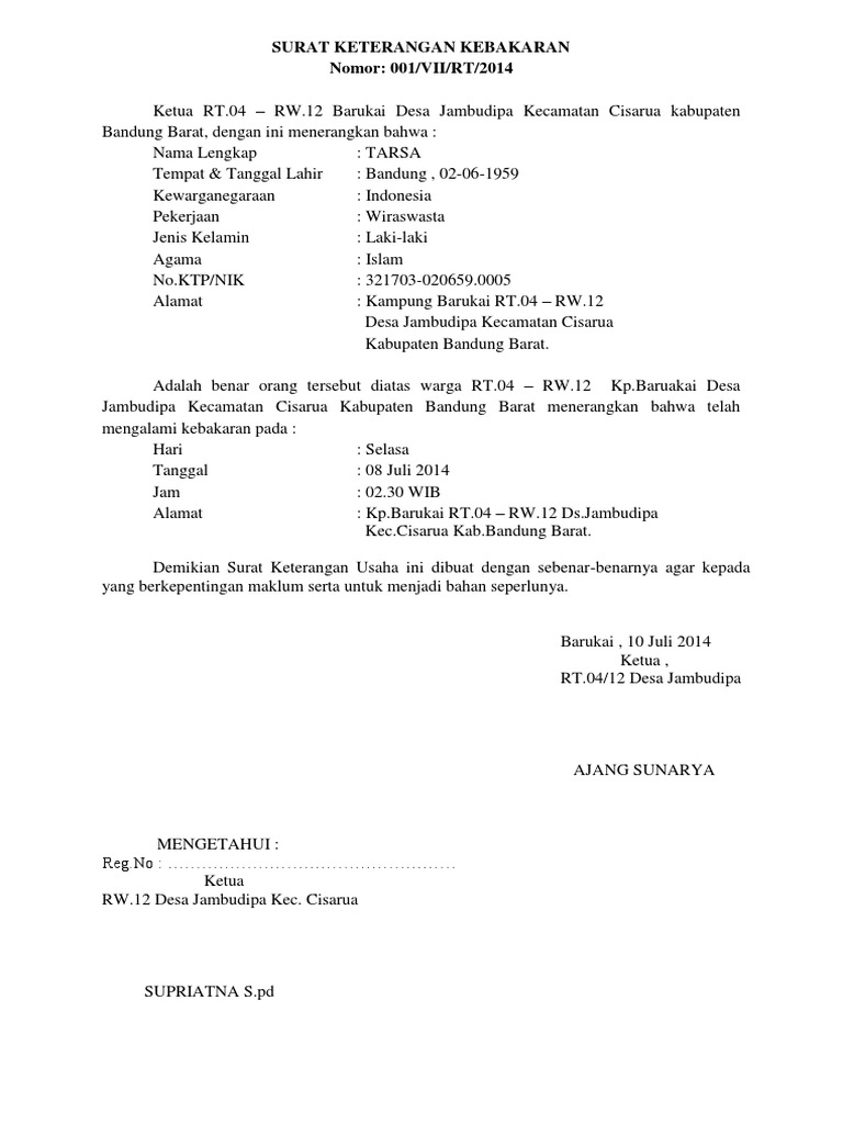 Contoh surat keterangan kebakaran. Contoh format surat keterangan tidak sengketa dari. Fungsi utama dari penerbitan surat ini adalah untuk menjelaskan dan membenarkan sebuah fakta yang dibutuhkan sebagai data administrasi. Contoh format surat kuasa untuk melakukan penarika. Contoh surat keterangan kebakaran dari desa. Contoh surat keterangan surat keterangan merupakan salah satu jenis surat resmi yang paling banyak dipergunakan saat ini. Contoh surat wasiat tanah untuk istri contoh surat wasiat harta warisan yang dibuat sendiri dan di titipkan ke notaris agar memiliki kekuatan hukum yang lebih tinggicontoh surat wasiat.