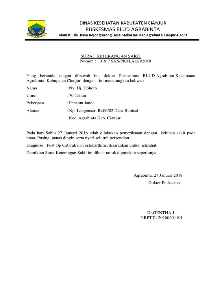Terkadang untuk pengurusan pemakaman kita membutuhkan surat keterangan kematian dan biasanya surat yang digunakan untuk pemakaman ini dikeluarkan oleh dokter di rumah sakit rt atau rw setempat atau bisa dari desa. Definisi dan kumpulan contoh surat keterangan sakit dari dokter dalam bahasa inggris surat keterangan sakit merupakan sebuah surat yang ditujukan kepada sebuah instansi baik sekolah kantor rumah sakit sebagai suatu keterangan bahwa kita tidak dapat melakukan aktivitas seperti biasanya. 15 contoh surat keterangan sehat untuk berbagai keperluan jika anda pernah melamar pekerjaan atau sudah menikah anda tentu pernah mengurus jenis surat ini. Dokumen serupa dengan surat keterangan kematian. Sabarmiokre 22 mei 2012 dokter puskesmas sabarmiokre dr. Surat ini menjadi salah satu dokumen pelengkap yang harus dimiliki jika mendaftar pada instansi atau perusahaan tertentu.