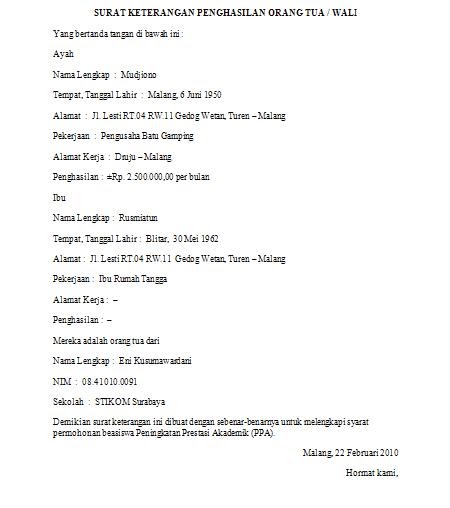 Contoh surat keterangan penghasilan orang tua untuk daftar kuliah pdf. Untuk download surat ini dalam format docx microsoft word silakan klik link berikut. Selain itu juga digunakan untuk mahasiswa yang sedang mengajukan keringanan uang kuliah tunggal maupun pengajuan pertama uang kuliah tunggal. Preview contoh surat pernyataan penghasilan orang tua. Surat pernyataan penghasilan orang tua merupakan salah satu persyaratan wajib yang perlu dilampirkan seorang pelajar atau mahasiswa ketika hendak mengurus keperluan beasiwasama halnya dengan surat keterangan tidak mampu dari rt rw tempat tinggal pelajar mahasiswa tersebut. Contoh surat keterangan penghasilan penggunaan keterangan tertulis tentang penghasilan bisa digunakan untuk berbagai keperluan. Kedua surat tersebut memiliki fungsi dan kegunaan yang sama yakni memberikan bukti otenttik dari pemohon untuk dapat.