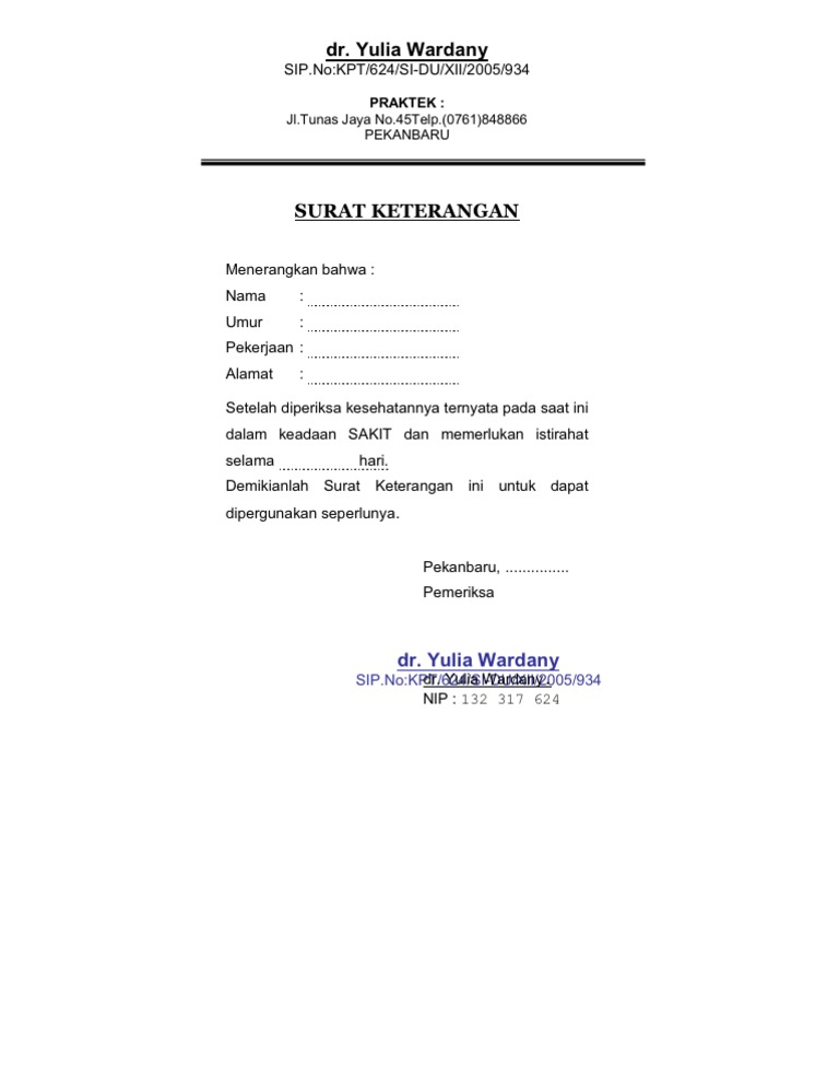 Demikian contoh dan format penulisan surat keterangan praktek dokter gigi di sebuah klinik di wilayah madiun jawa timur. Surat ini diperlukan untuk memberitahukan kondisi kesehatan yang sedang dialami oleh seseorang dengan harapan mendapatkan izin tidak masuk kerja karena sakit. 15 contoh surat dokter untuk berbagai keperluan dalam berbagai hal dan urusan surat keterangan dari dokter sangatlah diperlukan. Surat ini merupakan contoh dari surat resmi dimana penulisan dan penggunaan bahasa yang harus sesuai dengan ejaan yang disempurnakan. Dengan keterangan resmi melalui surat tersebut maka absensi pekerjaan kepegawaian pun tidak akan dianggap membolos oleh pihak perusahaan. Perlu admin beritahukan bahwa portal website kumpulan contoh surat berisi contoh surat bisnis surat dinas surat izin.