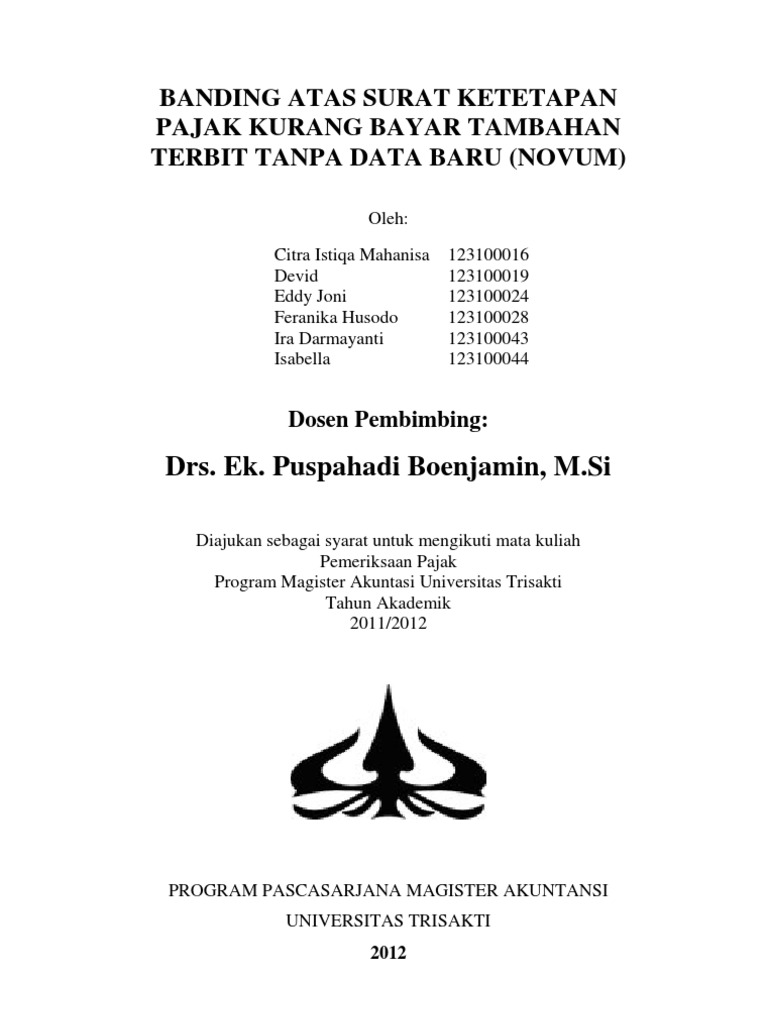 Contoh surat ketetapan pajak kurang bayar tambahan. 3 surat ketetapan pajak kurang bayar tambahan skpkbt berdasarkan pengertiannya surat ketetapan pajak kurang bayar tambahan atau skpkbt merupakan skp yang diterbitkan dengan tujuan untuk menetapkan tambahan atas besaran pajak yang akan ditetapkan. Pajak penjualan atas barang mewah apabila jumlah pajak yang dibayar sama dengan jumlah pajak yang terutang atau pajak tidak terutang dan tidak ada pembayaran pajak. Surat ketetapan pajak kurang bayar tambahan skpkbt skpkbt adalah surat ketetapan pajak yang menentukan tambahan atas jumlah pajak yang telah ditetapkan. Melainkan anda harus membayar tambahan sanksi administrasi atau denda berupa bunga yang besarannya tergantung kasus kurang bayar pajak anda. Jika anda mendapat skpkb dari ditjen pajak maka biaya yang harus anda bayarkan tidak lah hanya jumlah kekurangan bayar pajak anda sebagaimana tertera dalam surat ketetapan yang diterbitkan. Timbulnya ketetapan ini biasanya dikarenakan adanya data baru yang belum terungkap pada saat pemeriksaan sebelumnya pada tahun pajak yang bersangkutan.
