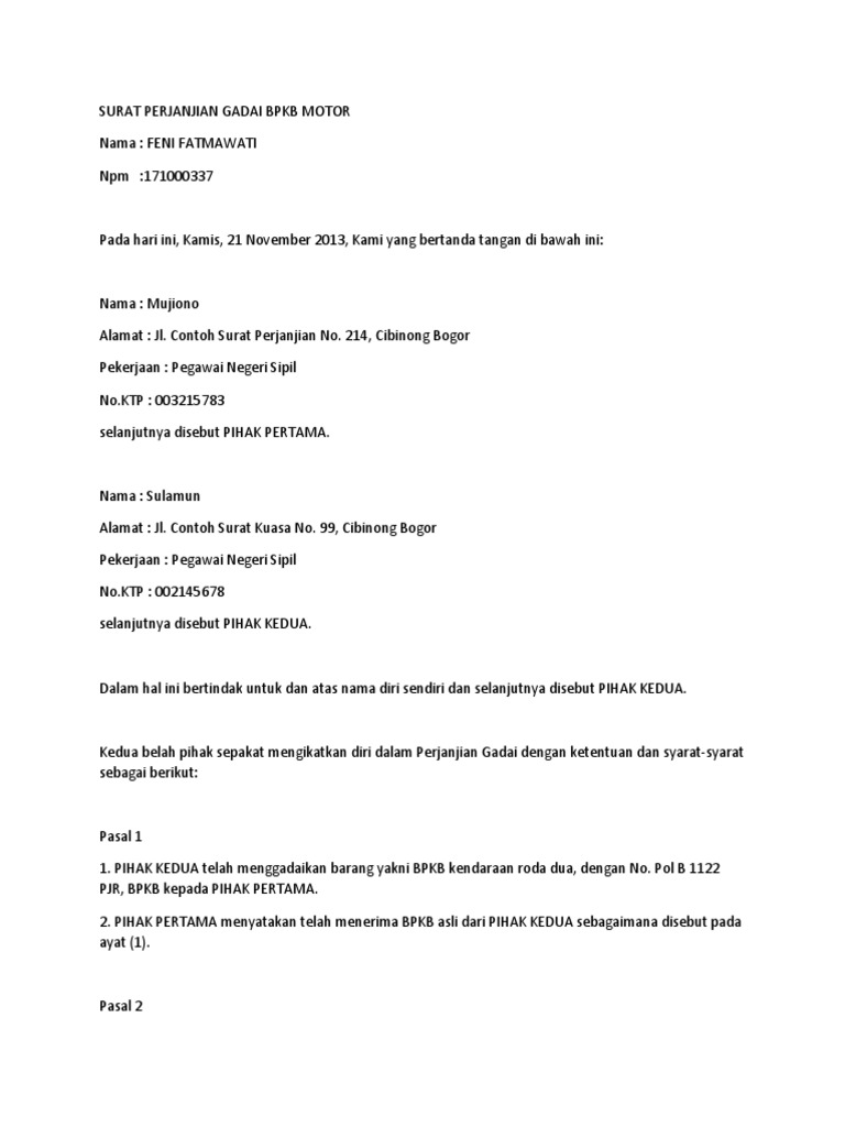Contoh surat resmi no. Di bawah ini kami akan memberikan sebuah contoh surat yang berisi tentang informasi bahwa pihak pertama telah memberikan kuasa kepada seseorang yang ia tunjuk atau pihak kedua untuk melakukan pengambilan bpkb motor yamaha. Bandung 17 agustus 1963 pekerjaan. Itulah 7 contoh surat kuasa jaminan bpkb motor kami berharap contoh surat yang kami sampaikan dapat membawa manfaat untuk anda dan bila dirasa anda masih kurang puas dengan contoh surat dari kami maka kami memohon maaf sebesar besarnya karena kami menyadari bahwa blog ini masih jauh dari kata sempurna untuk itu kami mohon masukan dan saran dari anda demi kemajuan blog ini. Apabila tidak ada dukumen tersebut maka kemungkinan besar merupakan kendaraan curian. Dalam menulis juga harus menggunakan bahasa indonesia yang baik dan benar.