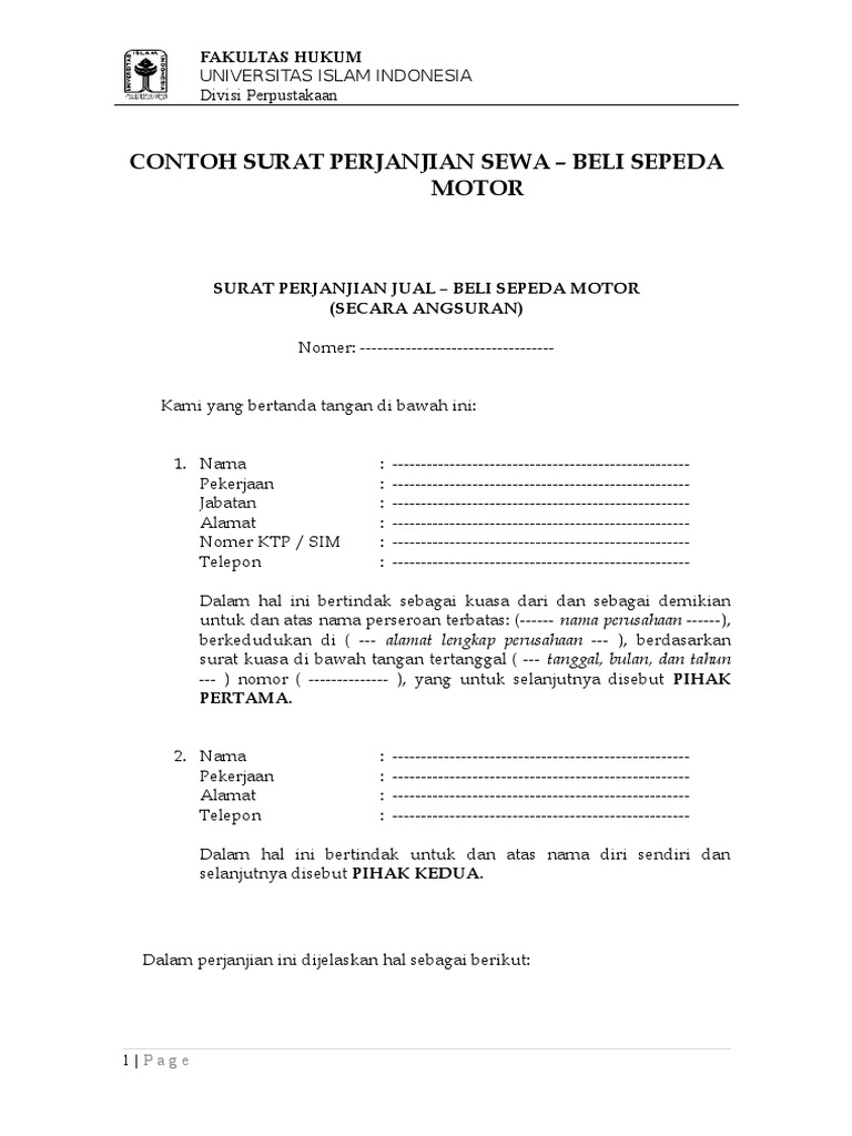 Contoh surat kuasa jual beli motor. 4 contoh surat perjanjian jual beli motor untuk penjual dan pembeli surat perjanjian jual beli motor merupakan surat yang berisi informasi tentang transaksi dan ketentuan ketentuan yang ada di dalam proses transaksi jual beli tersebut seperti menjelaskan objek dan biaya yang dikeluarkan untuk membeli objek yang dijualbelikan. Kali ini akan dibahas tentang contoh surat jual beli motor dengan kondisi sudah bekas. Demikian mengenai contoh surat jual beli motor dan bagian atau format suratnya yang telah dijelaskan semoga dapat menambah wawasan para pembaca dimanapun anda berada. Surat perjanjian jual beli mobil sangat penting untuk diingat ketika anda menandatangani perjanjian pembelian mobil untuk mobil. Di sana juga tercantum siapa yang menanggung biaya pengurusan balik nama dan juga diatur bagaimana apabila terjadi perselisihan. Surat perjanjian jual beli motor bahwa pada tanggal 14 april 2020 telah terjadi kesepakatan antara pihak pertama sebagai pemilikpenjual 1 unit honda vario 150cc warna putih tahun 2019 dan pihak kedua sebagai pembeli dan penerima kuasa.