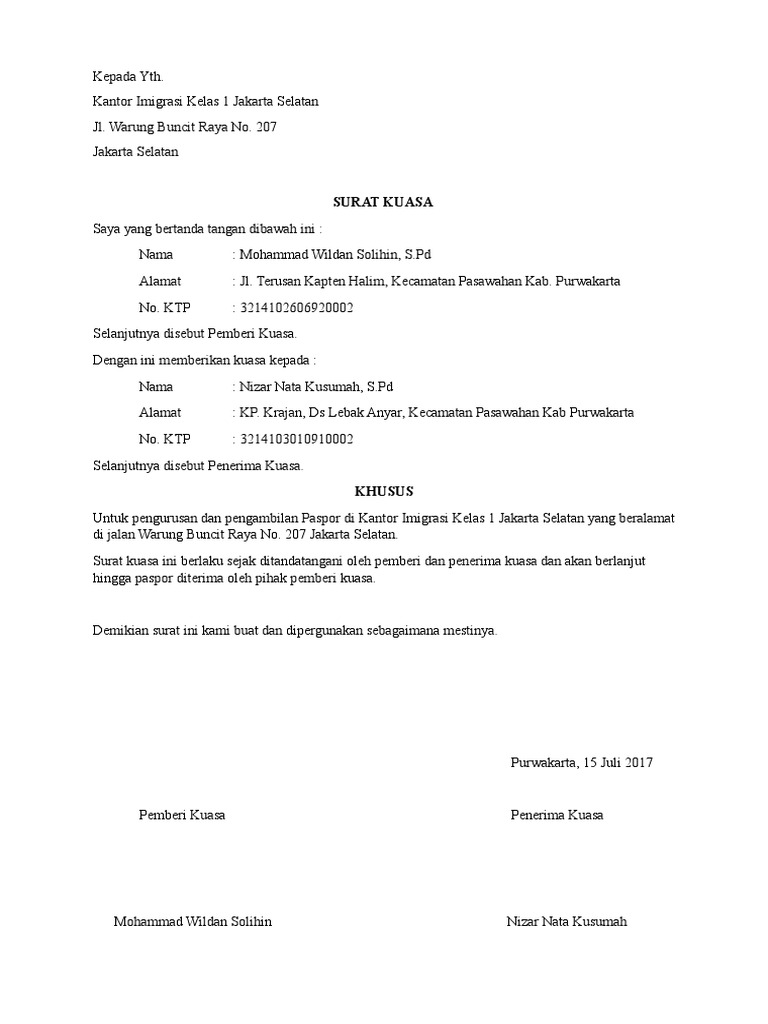 Misalnya surat kuasa untuk perwakilan pengambilan ijazah pengambilan uang gaji pengambilan paspor pengambilan dokumen dokumen penting dan lain lain. Yang bertanda tangan dibawah ini. Untuk pengurusan pembuatan paspor di kantor imigrasi jember jawa timur. Contoh surat rekomendasi pembuatan paspor dari tempat kerja sekolah surat rekomendasi sangatlah bermanfaat bagi orang yang meminta rekomendasi dan juga bagi pihak yang memberi rekomendasi serta pihak ketiga yang akan menggunakannya. Lumajang 8 oktober 2012 penerima kuasa pemberi kuasa siti rodliyah mudjiati 3. Surat kuasa yang bertanda tangan di bawah ini.