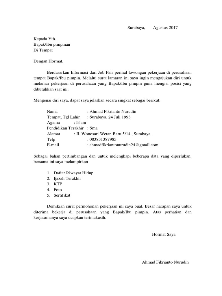Contoh surat lamaran kerja ini dibuat tentu saja untuk menjadi referensi bagi anda yang sedang mencari panduan untuk membuat surat lamaran kerja. Surat lamaran kerja informasi dari teman ben jobs contoh lamaran surat lamaran kerja informa. Contoh soal contoh soal laju reaksi un. Contoh surat contoh surat pengalaman kerja listrik. Baik untuk anda yang baru saja lulus kuliah ingin pindah kerja ataupun bagi anda yang fresh graduate.