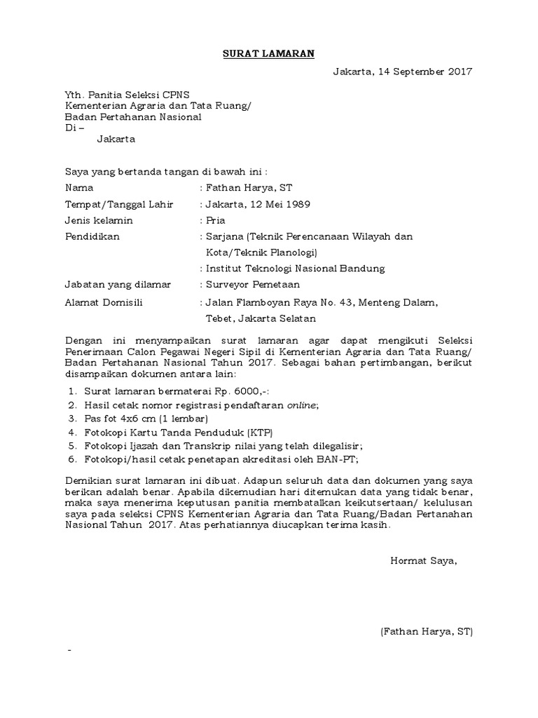 Contoh surat lamaran kerja di badan pertanahan nasional. Sebagai bahan pertimbangan berikut disampaikan kelengkapan dokumen antara lain. Contoh surat lamaran kerja badan pertanahan nasional have a graphic from the othercontoh surat lamaran kerja badan pertanahan nasional in addition it will feature a picture of a sort that could be seen in the gallery of contoh surat lamaran kerja badan pertanahan nasional. Saya yang bertandatangan dibawah ini. Sebagai bahan pertimbangan berikut disampaikan kelengkapan dokumen antara lain. Dan mungkin saja anda berniat memberikan surat tanah atas nama anda sendiri kepada orang lain untuk dipergunakan sebagai jaminan atas pinjaman dimaksud. Inilah pembahasan selengkapnya mengenai contoh surat lamaran kerja badan pertanahan nasional.