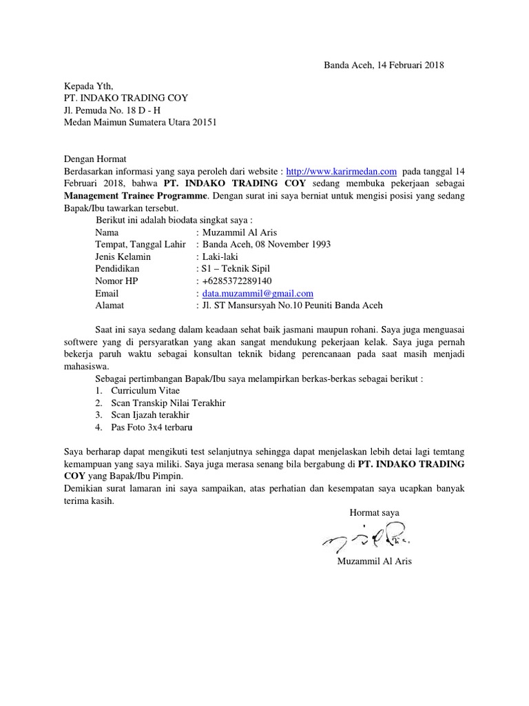 Mungkin terdapat jutaan artikel di internet yang menyediakan panduan bagaimana cara membuat surat lamaran pekerjaan yang disertai contoh surat lamaran pekerjaan baik itu surat lamaran kerja untuk melamar ke perusahaan maupun surat lamaran pekerjaan. Nah jika anda juga berencana melamar pekerjaan di perusahaan maka contoh surat lamaran kerja di persuahaan yang akan saya bagikan di bawah ini patut anda simak. Apakah kamu sedang mencari contoh surat lamaran kerja bahasa inggris cover letter misalnya karena ingin melamar kerja ke perusahaan multinasionalmeskipun proses mencari pekerjaan sudah terjadi sejak lama namun tak banyak orang yang dapat membuat surat lamaran pekerjaan yang baikhal ini karena kurangnya pembekalan bagi mahasiswa dalam hal persiapan untuk melamar pekerjaan ke sebuah. Medan 13 juni 2019. Surat pengalaman kerja ini berguna sebagai bukti bahwa seseorang itu sudah memiliki pengalaman kerja di bidang tertentu sesuai dengan yang tertera pada surat pengalaman kerja. Nah jika anda sedang mencari contoh permoh.