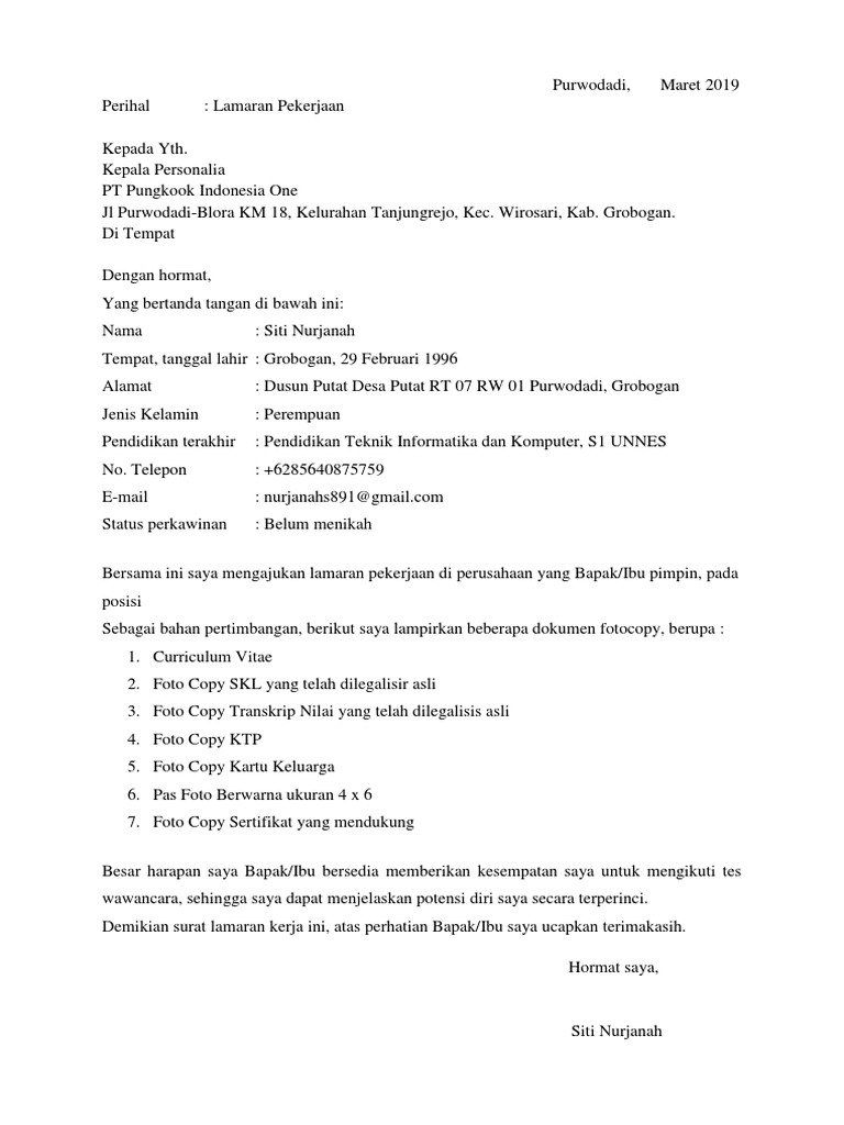 Pas foto 34 6. Postingan ini jawaban jika anda mencari surat lamaran kerja skl yang pas dan mudah didownloadedit dengan microsoft word. Dengan membuat surat lamaran kerja yang baik dan benar akan menarik dari pihak hrd pabrik. Contoh surat lamaran kerja yang baik dan benar sesuai dengan eyd ejaan yang disempurnakan untuk melamar pekerjaan di berbagai instansi baik bumn maupun swasta lengkap dengan filedoc siap untuk didownload dan diprint outcetak. Anda dapat melihat dengan jelas contoh surat lamaran kerja garment menggunakan desktop anda tablet android atau iphone dan perangkat smartphone lainnya secara gratis. Contoh surat lamaran untuk pabrik garmen lokerpbk com loker pabrik cikarang paling baru agustus 2020.