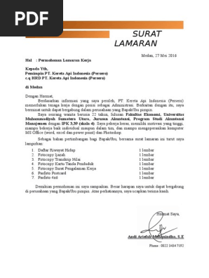 Sama hal nya ketika anda ingin melamar kerja di pt. Kai anda juga diharuskan membuat surat lamaran kerja yang ditujukan kepada pt kai.