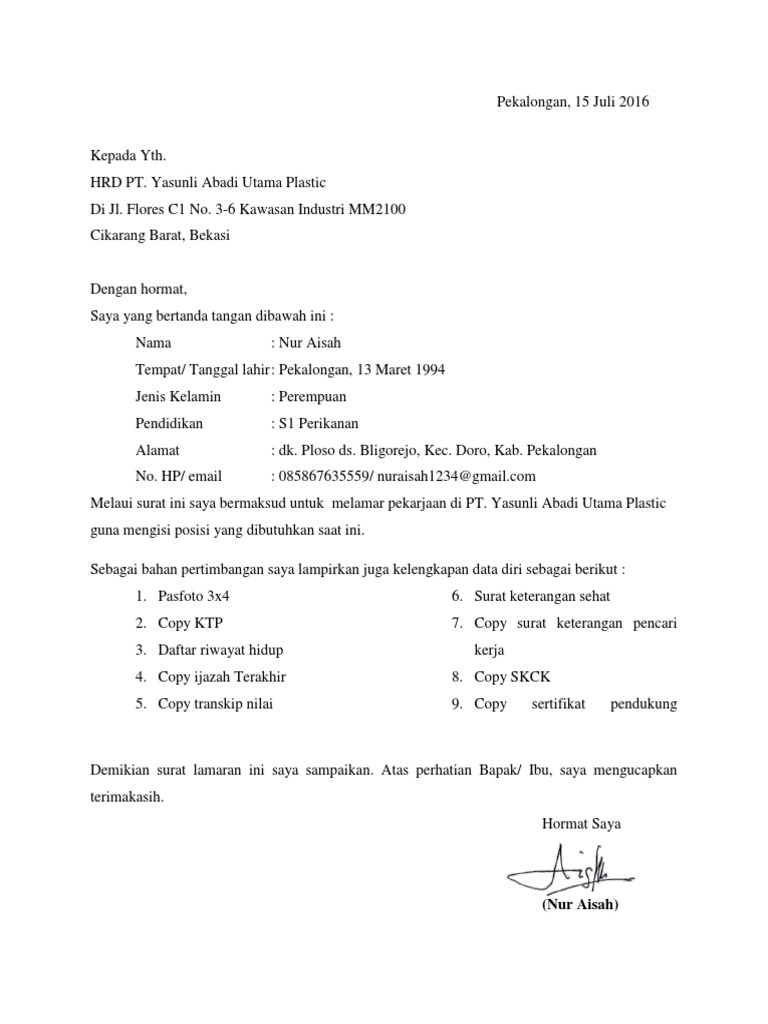 Contoh surat lamaran kerja di pt yamaha. Seringkali suatu instansi perusahaan meminta surat lamaran dalam versi doc ataupun tulis tangan. Surat lamaran kerja adalah surat yang digunakan untuk melakukan permohonan mendapatkan pekerjaan sesuai pengalaman pada perusahaan tertentu. Jalan perintis no053 demak. Kepada yth hrd pt sumber alfaria trijaya. Contoh surat lamaran kerja di alfamart. Nah jika anda juga berencana melamar pekerjaan di perusahaan maka contoh surat lamaran kerja di persuahaan yang akan saya bagikan di bawah ini patut anda simak.