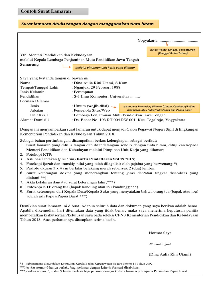 Contoh surat lamaran ditulis artinya format surat lamaran dan surat pernyataan cpns 2019 untuk mendaftar di pemprov jawa tengah bisa saja berbeda dengan di kemendagri misalnya. Contoh surat lamaran kerja tulis tangan untuk bisa melamar pekerjaan yang kita inginkan alangkah baiknya kita membutuhkan surat lamaran kerja itu sendiridan untuk membuat surat lamaran kerja ada syarat dan ketentuan tertentu di mulai dari penulisan kata dan kaidah eyd nya.