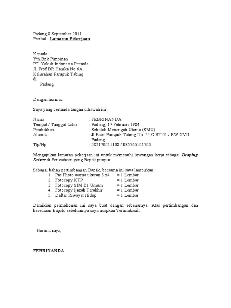 Manfaat cara minum efek samping dll. Contoh surat lamaran kerja sopir driver yang benar.