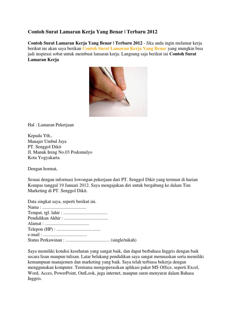 Surat lamaran kerja benar benar merupakan hal kebutuhan utama bagi kita para pencari kerja untuk mendapatkan pekerjaan yang layak apakah dari kita yang baru saja wisuda kuliah pindah kerja dari perusahaan lain mencari suasana yang baru ataupun. Nah jika anda juga berencana melamar pekerjaan di perusahaan maka contoh surat lamaran kerja di persuahaan yang akan saya bagikan di bawah ini patut anda simak. Contoh surat lamaran kerja pada artikel ini kita akan membahas contoh surat lamaran pekerjaan yang dapat kamu dapatkan beserta file doc nya. Contoh surat lamaran guru ptt tentu surat lamaran kerja guru langsung tertuju pada posisi pengajar guru. Namun sebelum kita lanjut ke contoh surat lamaran kerja ada baiknya kita bahas dulu mengenai tips dan trik serta kiteria apa saja yang dibutuhkan agar surat lamaran kerja yang kamu buat terkesan. 16 contoh surat lamaran kerja via email terbaru yang baik dan benar di era modern seperti saat ini contoh surat lamaran kerja via email lebih banyak dicari oleh mereka yang saat ini tengah mencari pekerjaan.