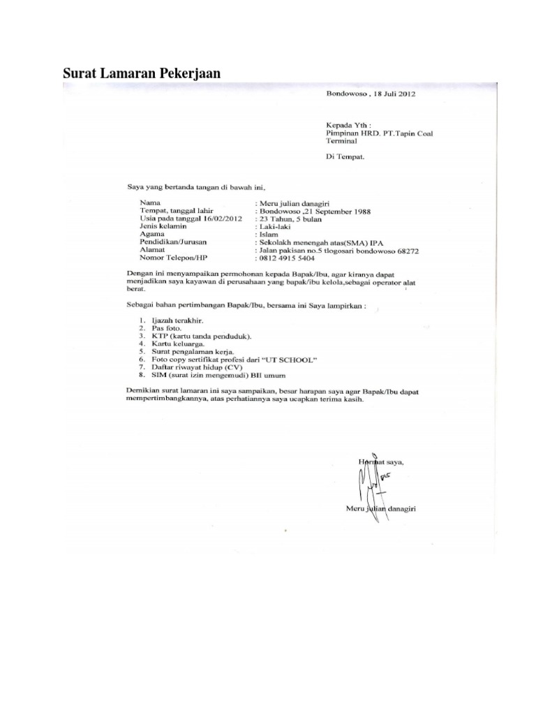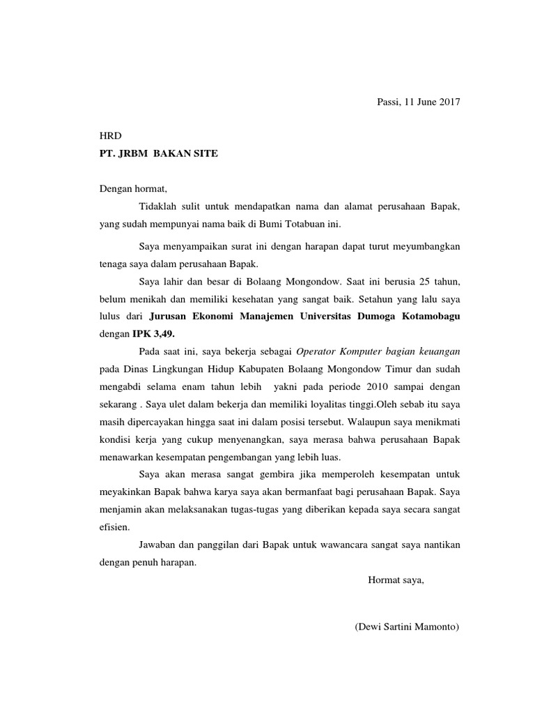 Contoh surat lamaran kerja operator alat berat. Alat fisioterapi on 2206 1 wah makasih banget ya bermanfaat banget nih thanks beratcontoh surat permohonan ganti rugi sebagai pihak yang merasa dirugikan contoh surat lamaran kerja operator alat. Tapi saya ingatkan kembali bahwa pada postingan saya sebelumnya saya juga sudah membagikan contoh surat lamaran kerja di kantor notarisapabila anda membutuhkan referensi dalam menulis surat lamaran. Dengan hormat dengan surat ini kami bermaksud untuk menawarkan jasa sewa alat berat untuk proyek yang se dikerjakan oleh pt. Surat lamaran kerja operator alat berat untuk soal melamar kerja memang dibutuhkan banyak sekali hal tentang pengalaman tetapi tidak semua membutuhkan pengalaman kerja. Menanggapi informasi lowongan kerja yang tertera di internet yang menyatakan bahwa perusahaan bapakibu sedang mencari seorang operator alat berat. Semoga dengan adanya contoh dibawah ini anda dapat membuat surat lamaran yang bagus dan benar sebagaimana contoh pada artikel ini.