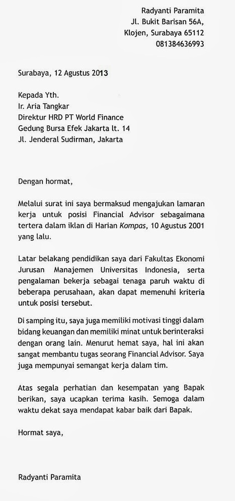 Contoh surat lamaran kerja ketika hendak melamar pekerjaan menjadi karyawan di berbagai instansi manapun pasti hal yang pertama dilakukan pelamar adalah membuat surat lamaran pekerjaan. Berikut contoh surat lamaran kerja yang dapat dijadikan referensi untuk melamar pekerjaan di berbagai instansi. Diberikan ketika ada karyawan yang resign mengundurkan diri dari perusahaan tersebut. Ilham ramadhan contoh surat lamaran pekerjaan 8 lamaran dalam bentuk narasi. 15 contoh surat lamaran kerja via email yang baik dan benar secara resmi dll format penulisan surat sebagai bagian dari surat fromal maka format surat pengalaman kerja pun tak jauh berbeda dengan jenis lainnya. 15 contoh surat pengalaman kerja yang baik dan benar bagi orang yang sedang mencari pekerjaan tentu surat pengalaman kerja merupakan salah satu surat yang sangat dibutuhkan.