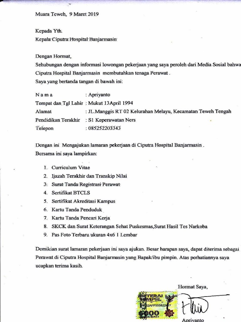 Seringkali suatu instansi perusahaan meminta surat lamaran dalam versi doc ataupun tulis tangan. Terima kasih sudah berkunjung ke blog contoh surat lamaran kerja terbaru 2016 ini dan semoga lamaran kerja anda diterima di instansi pemerintah daerah tempat anda melamar. 15 contoh surat lamaran kerja di rumah sakit berbagai posisi bekerja di suatu rumah sakit tentu merupakan impian yang sangat besar bagi seseorang. Contoh surat lamaran kerja sebagai bidan melamar bekerja sebagai perawat atau bidan di puskesmas klinik rumah sakit bisa melalui surat lamaran kerja dan daftar riwayat hidup. Nah di halaman ini saya akan membagikan beberapa contoh namun sebelum itu kita simak terlebih dahulu ulasan berikut ini. Berikut contoh surat lamaran kerja yang dapat dijadikan referensi untuk melamar pekerjaan di berbagai instansi.