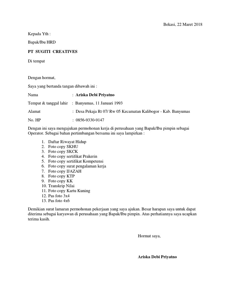 Tidak peduli apa tingkat pendidikannya atau pun keahlian apa yang dimiliki seseorang tersebut. Sebelum masuk ke contoh cara penulisan surat lamaran kerja yang baik dan benar ada baiknya kamu membaca ini terlebih dahulu agar bisa dikoreksi dan memperbaiki kesalahan yang sering dilakukan oleh para jobseeker diluar sana. Data lengkap tentang contoh surat lamaran kerja toserba yogya. Kepala bagian personalia the blitz jl. 3surat lamaran kerja hendaknya ditulis secara manual dan memang anda yang membuatnya 4lengkapi dengan data data yang dibutuhkan oleh perusahaan tempat anda melamar kerja 5lampirkan surat pendukung lainnya seperti sertifikat pengalaman kerja contoh surat lamaran kerja bali 20 maret 2018 kepada yth. Nah jika anda juga berencana melamar pekerjaan di perusahaan maka contoh surat lamaran kerja di persuahaan yang akan saya bagikan di bawah ini patut anda simak.