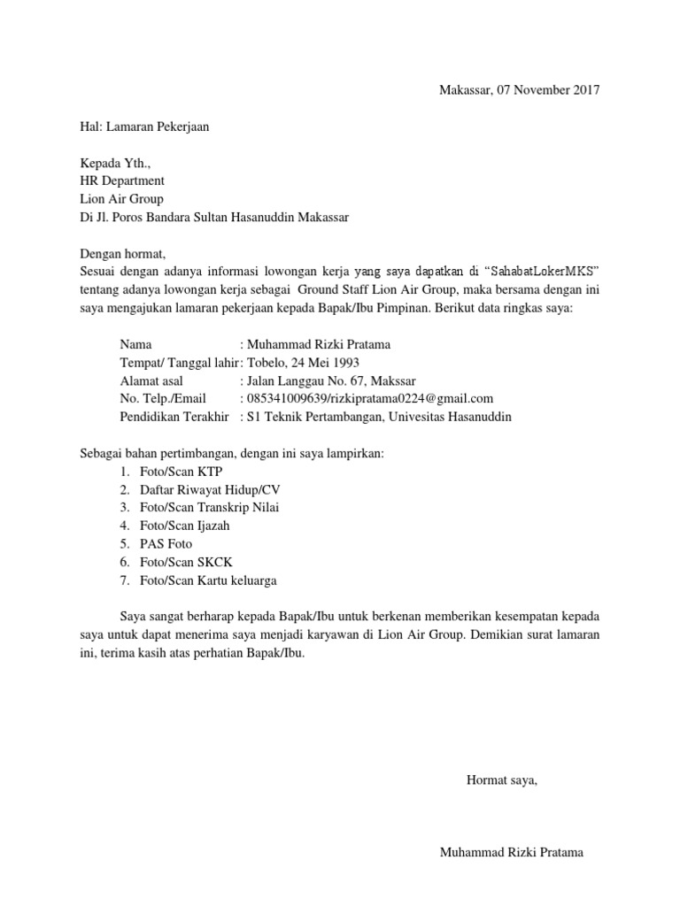 Nah bagi anda yang sekarang sedang mencari pekerjaan untuk bulan januari februari maret april mei juni juli agustus september oktober november dan desember disini adalah tempat yang tepat untuk mengetahui semua tentang. Contoh surat lamaran lion air.