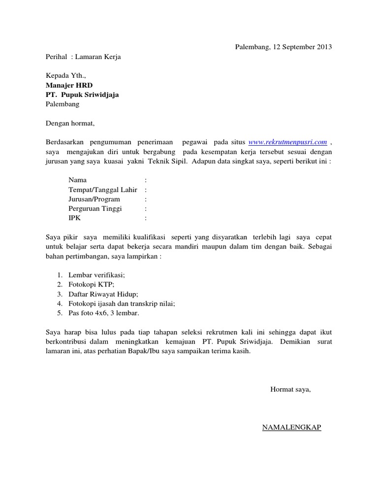 Contoh surat lamaran pekerjaan berdasarkan pengumuman. 111 jakarta pusat 11010. Di internet ada banyak sekali paduan contoh surat lamaran kerja yang baik dan benar serta sesuai dengan kriteria kriteria yang seharusnya. Contoh surat lamaran kerja membuat surat lamaran kerja tidak boleh asal dalam membuatnya membutuhkan acuan sebagai referensi contoh surat lamaran kerja ini adalah salah satu bahan yang bisa dijadikan acuan dalam membuat surat lamaran pekerjaan. Kepada yth bpk sulaiman nur ali. Itulah beberapa contoh surat lamaran kerja yang dapat digunakan untuk referensi mencari kerja. Bandung 30 maret 2020 yth.