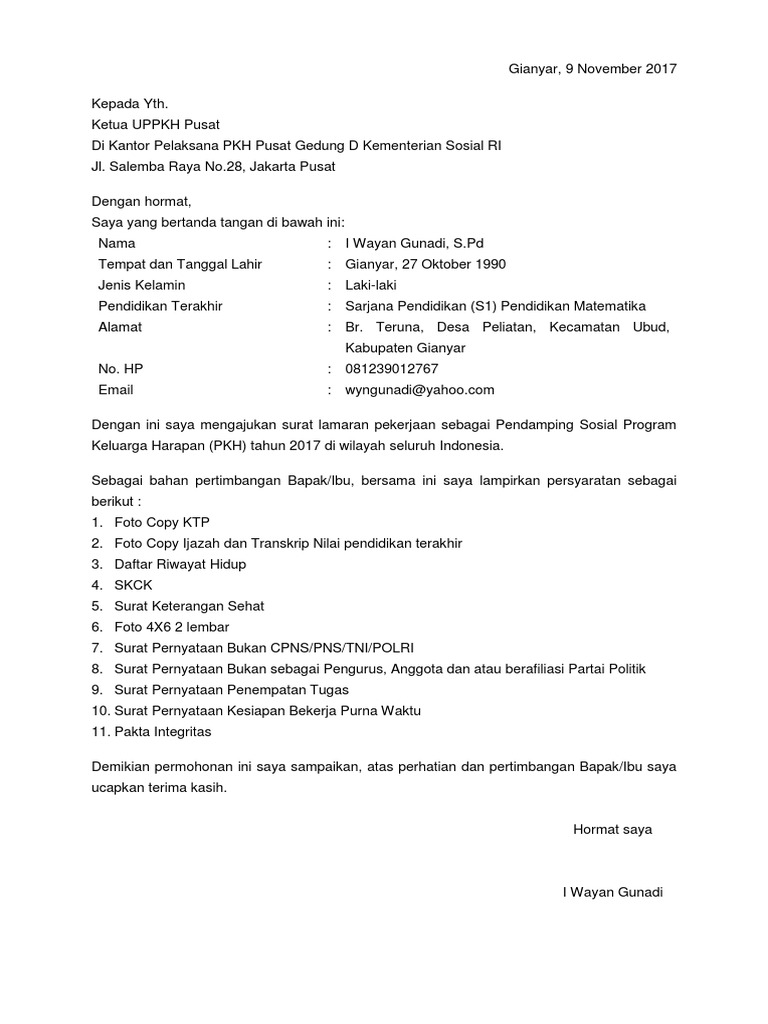 Id change language ubah bahasa. Di internet ada banyak sekali paduan contoh surat lamaran kerja yang baik dan benar serta sesuai dengan kriteria kriteria yang seharusnya. Admin blog kumpulan surat penting 2019 juga mengumpulkan gambar gambar lainnya terkait contoh surat lamaran pendamping lokal desa dibawah ini. Contoh surat lamaran kerja ini dibuat tentu saja untuk menjadi referensi bagi anda yang sedang mencari panduan untuk membuat surat lamaran kerja. 2 2 mendukung tandai dokumen ini sebagai bermanfaat 1 1 menolak tandai dokumen ini sebagai tidak bermanfaat tanamkan. Contoh surat contoh surat lamaran pendamping desa pld surat lamaran 13 contoh surat permohonan dana izin bantuan kerja dll benar 15 contoh surat lamaran kerja terbaru dan lengkap dengan berbagai pengisian kekosongan perangkat desa tahun 2017 website desa kalilunjar lihat.