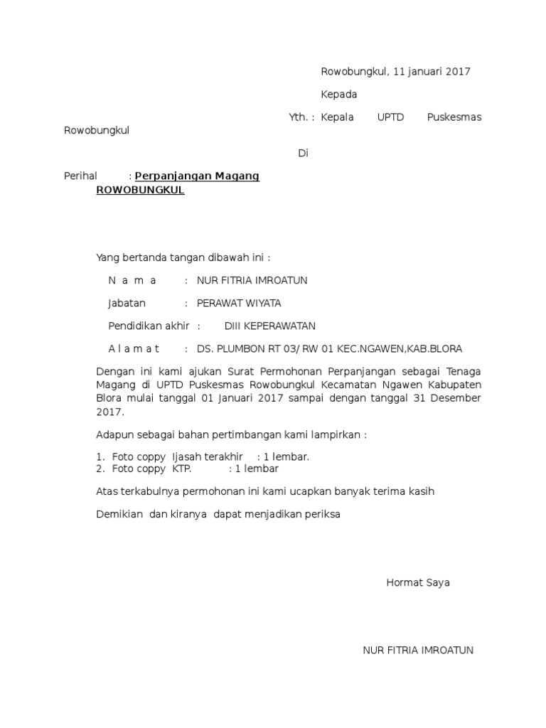 Tidak bisa magang begitu saja anda pun harus mengajukan permohonan terlebih dahulu. Jalan kebon agung 3 sleman yogyakarta perguruan tinggi. Permohonan magang kerja lampiran. Yogyakarta 17 september 2017 perihal. Buat temen temen fresh graduation seperti saya semoga aja bermanfaat ya jng lupa perhatikan kerapihan tulisanyg di bawah ini masih perlu perbaikanhehe. Bagi anda yang menempuh pendidikan di bidang kebidanan tentu akan terbiasa kerja magang di suatu rumah sakit ataupun di suatu puskesmas dan beberapa lembaga kesehatan lainnya.