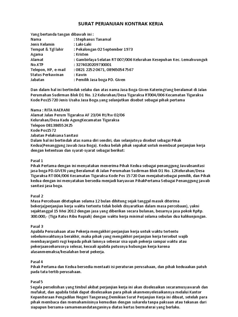 Lalu apa itu surat keterangan karyawan. Artinya adalah bahwa sebenarnya tidak ada kewajiban bagi perusahaan untuk membuat surat perjanjian kerja waktu tidak tertentu. Contoh surat perjanjian kerja pada aktifitas kerja terdapat surat perjanjian yang digunakan untuk membuat kesepakatan antar pihak pihak yang terlibat dalam kerjasama. Masa percobaan karyawan di suatu perusahaan dapat berlangsung selama satu hingga enam bulan lamanya. Surat perjanjian kerja kontrak masa percobaan. Pihak pihak yang terkait yang tertulis dalam surat biasanya pihak 1 perusahaan dan pihak 2 karyawan.