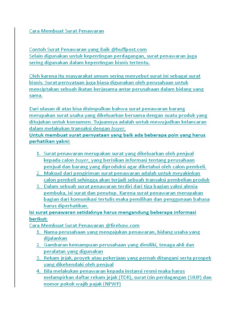 Penawaran suatu barang jasa bahkan kerjasama dengan pihak lain akan lebih baik jika menggunakan surat penawaran. Surat itu bermaksud meminta kepada penjual agar memberikan penawaran sacara resmi. Contoh surat penawaran barang produk negosiasi makanan harga march 22 2020 april 3 2019 by 4dm1n contoh surat penawaran barang pengertian surat penawaran ialah surat yang ditulis untuk menunjukkan maksud dan tujuan suatu perusahaan untuk menjalin kerja sama kepada perusahaan lainnya. Untuk itu diperlukan pengertian serta contoh surat penawaran yang baik.