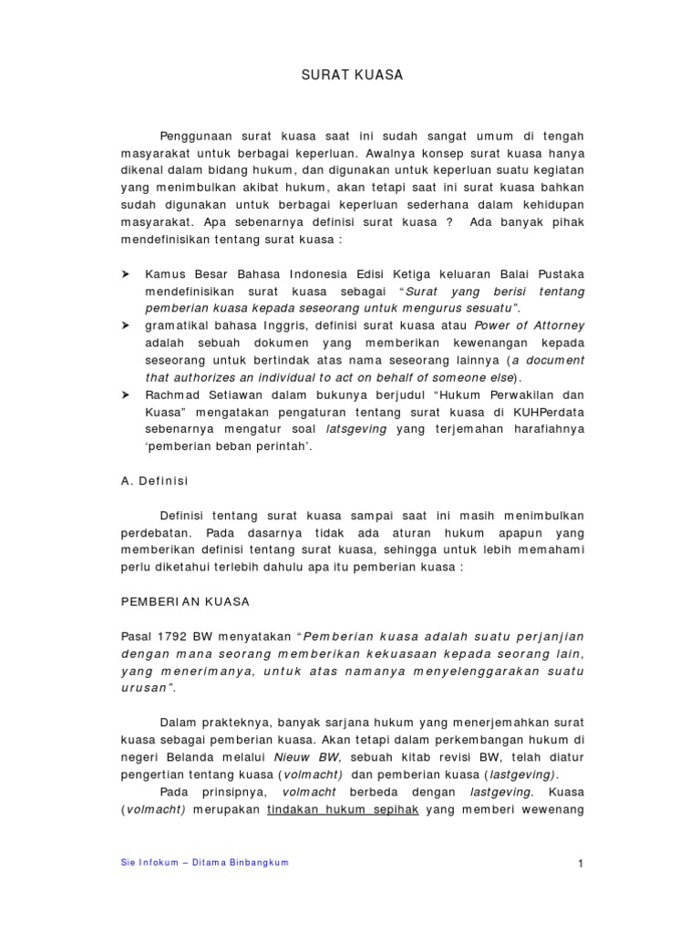 Surat kuasa untuk mengambil pensiun atau gaji. Pengertian surat kuasa adalah surat yang berisi.