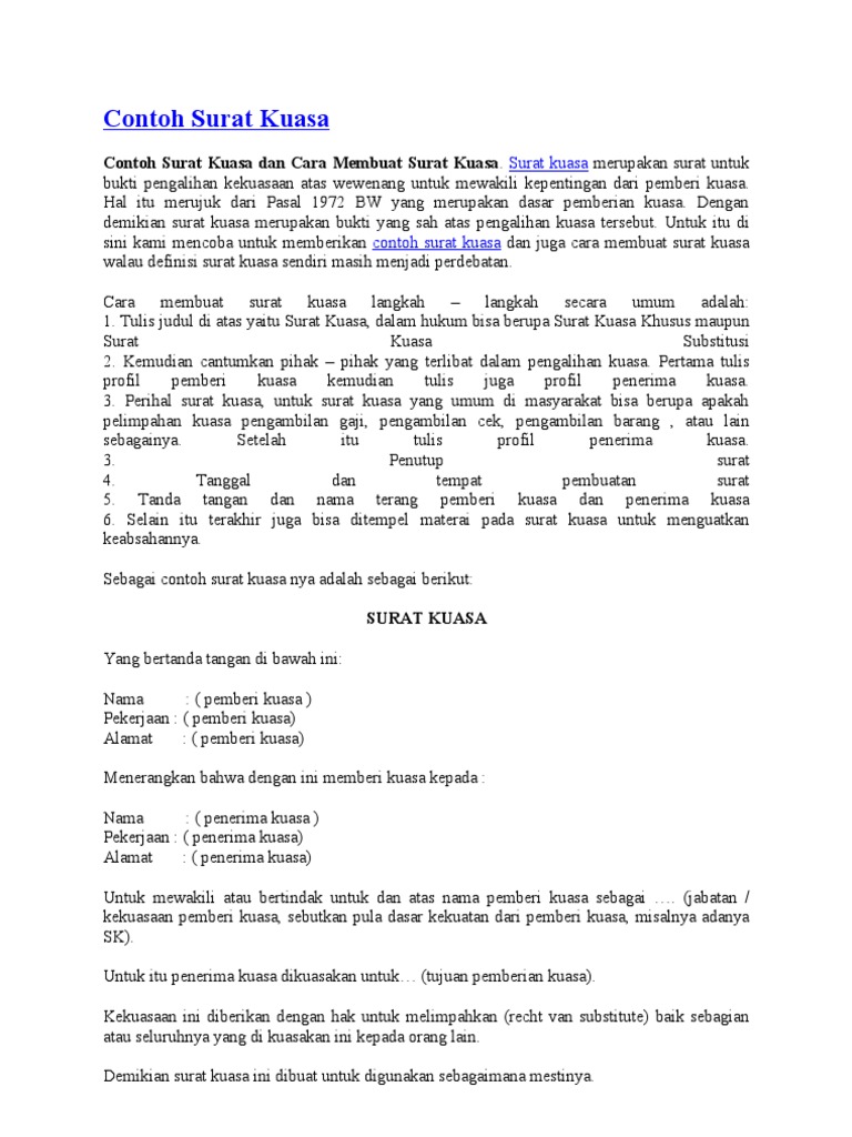 Berikut ini adalah contoh lengkap surat kuasa dan cara membuat surat kuasa dengan baik dan benar yang dapat digunakan di berbagai keperluan. Contoh surat kuasa sederhana surat kuasa pengambilan bpkb surat kuasa pengambilan uang gaji pensiun surat kuasa pengambilan ijazah dan lain lain. Pada kesempatan kali ini pengajarcoid akan membuat artikel yang berjudul 15 contoh surat kuasa tanah bank perwakilan bermaterai yuk sama sama kita bahas. Karenanya ia bisa memberi pelimpahan wewenang pada orang lain dengan dibuktikan dengan surat pelimpahan wewenang atau umum di kenal dengan surat kuasa. Contoh surat pencabutan kuasa yang benar jika dikesempatan yang sebelumnya kami telah membahas informasi tentang surat pemberian kuasa and rating. 15 contoh surat kuasa tanah untuk berbagai keperluan setiap harta benda tentu memiliki harga tersendiri yang harus kita jaga.