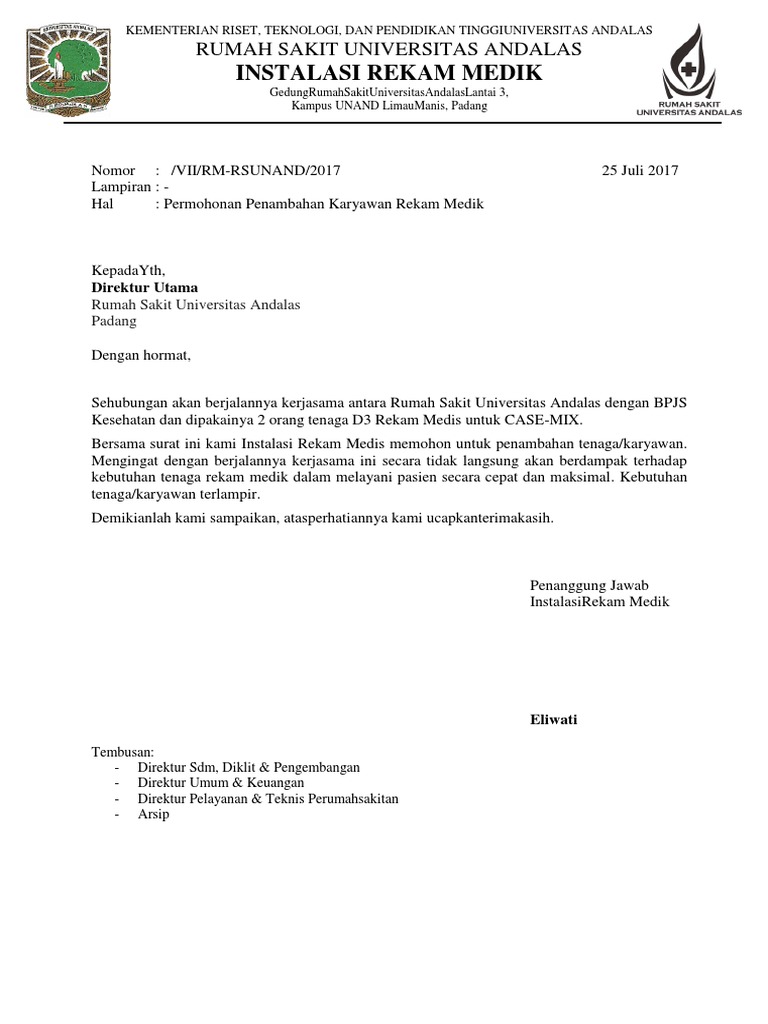 Mengingat dengan berjalannya kerjasama ini secara tidak langsung akan berdampak terhadap kebutuhan tenaga rekam medik dalam melayani pasien secara cepat dan maksimal. Surat ini bisa digunakan untuk melamar pekerjaan baru dan mempermudah mantan karyawan tersebut memperoleh pekerjaan karena berisi keterangan positif berkaitan kinerja dan prestasi yang pernah diraih. Walaupun sekarang ini sudah banyak media komunikasi yang canggih namun perusahaan sendiri masih harus tetap menggunakan surat. 15 contoh surat permintaan barang yang benar dan terlengkap dalam menjalankan roda perusahaan tentu tidak bisa terlepas dari urusan surat menyurat. Surat rekomendasi kerja merupakan sebuah surat yang biasanya di keluarkan oleh kepala perusahaan untuk memberikan rekomendasi mantan karyawannya untuk digunakan melamar pekerjaan baru. Contoh surat permohonan penambahan karyawan tipsdancontoh blogspot 2012 10 contoh surat permohonan htmlcontoh surat permohonan adalah fa.