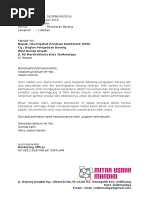 Contoh surat penawaran produk usaha tas batik adalah gambar contoh penawaran berdefinisi tinggi dan memiliki ukuran 1131x1600. Jenis surat ini tergolong masih merupakan salah satu jenis surat yang masih relevan untuk digunakan pada saat sekarang ini.
